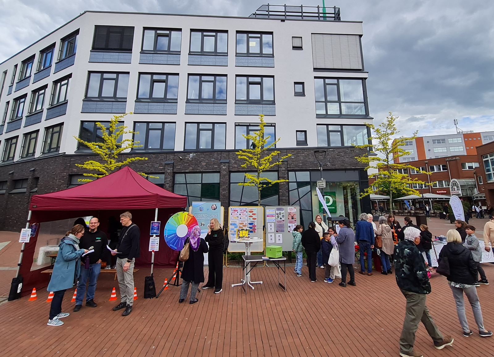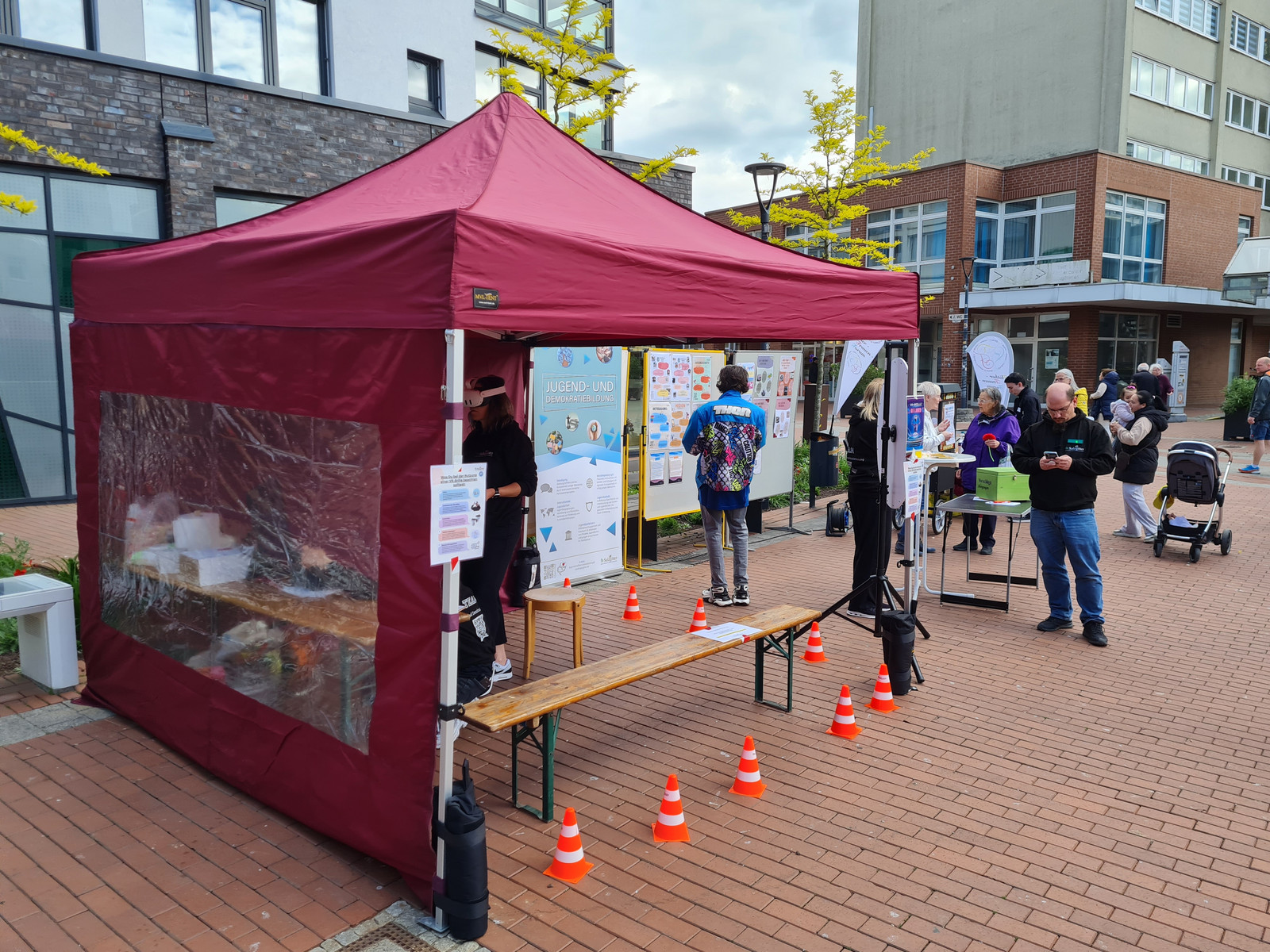 An über zehn Ständen präsentierten sich zivilgesellschaftliche Gruppen, kirchliche Initiativen, Gewerkschaften und politische Parteien mit Informations- und Mitmachangeboten. Das Programm bot unter anderem eine kreative Bastelstation, eine Fotoausstellung, einen virtuellen Rundgang durch das Anne-Frank-Haus und kulinarische Beiträge. Ein besonderes Highlight waren 80 Küchenstücke – ein Geschenk des Arbeitskreises Stadtgeschichte zum 80. Tag der Befreiung.