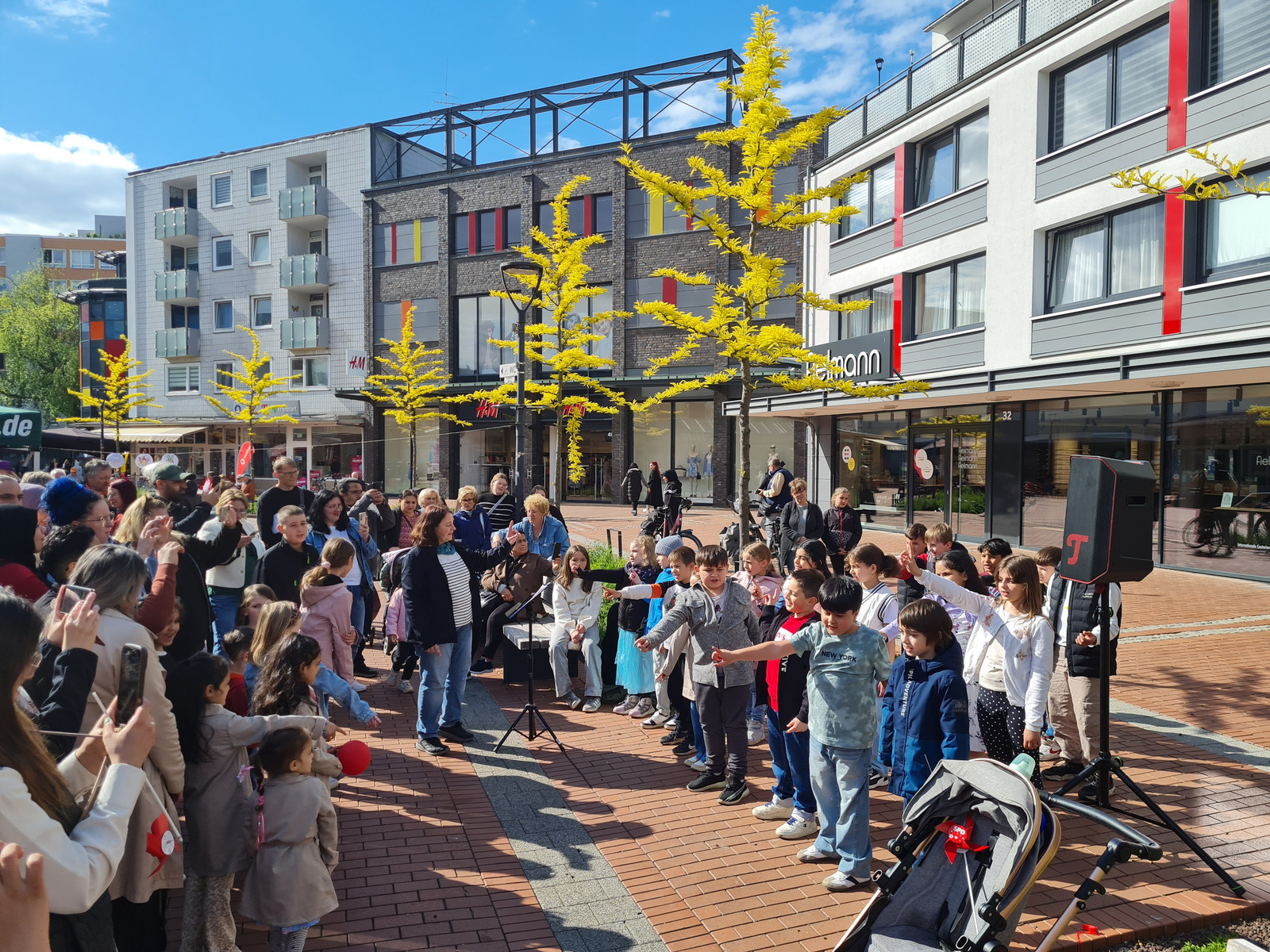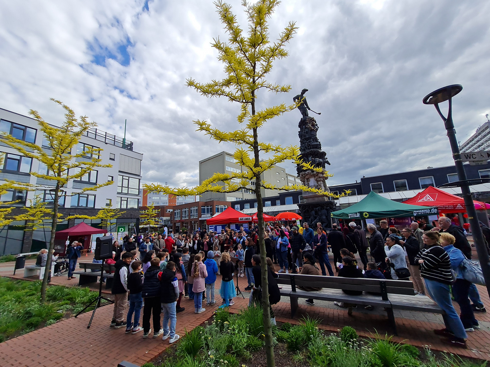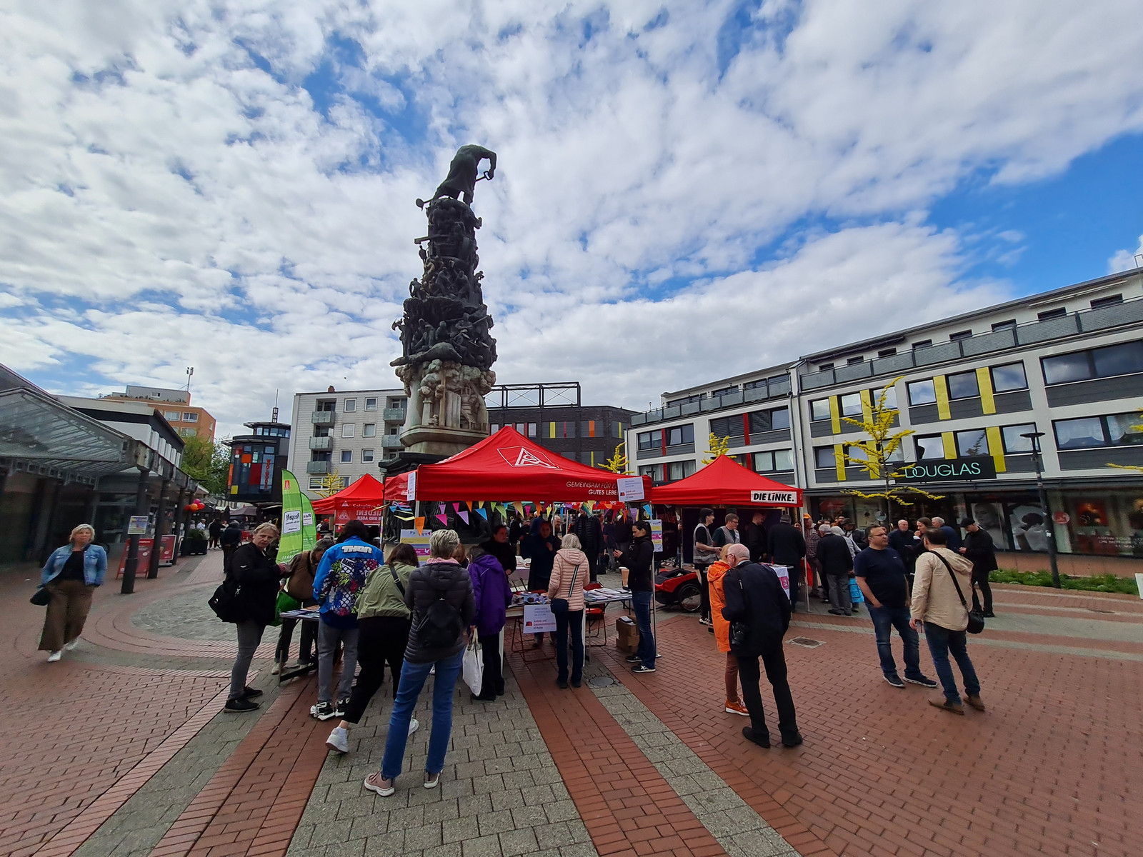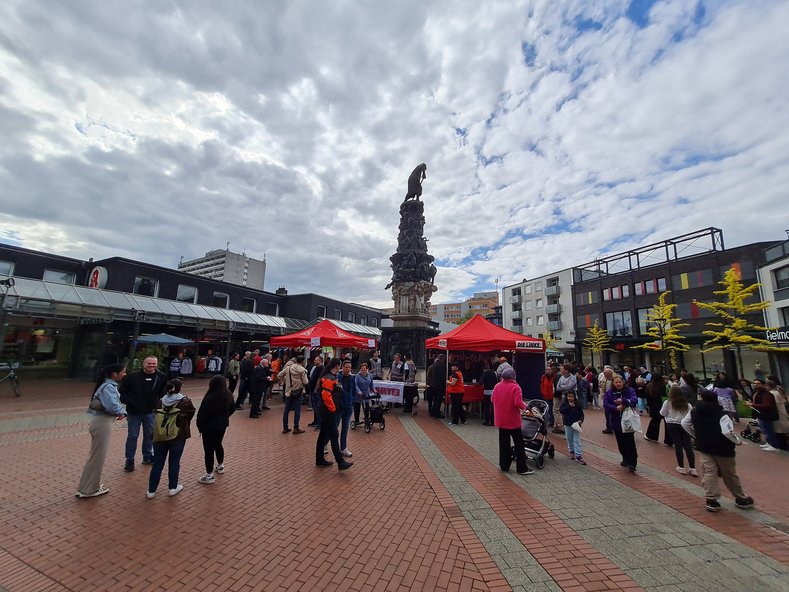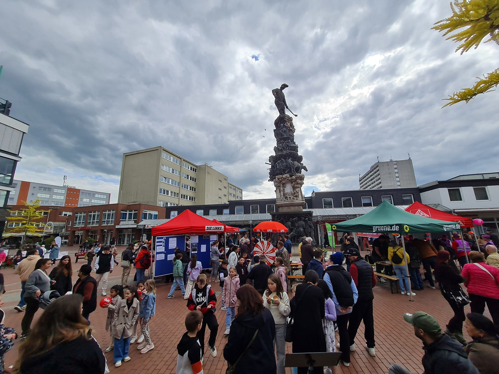 Am Nachmittag luden der Arbeitskreis Stadtgeschichte, die IG Metall Salzgitter-Peine und das Bündnis für Demokratie und Toleranz zu einem Friedensfest in die Lebenstedter Innenstadt ein. Von 16:00 bis 18:00 Uhr versammelten sich zahlreiche Besucher:innen rund um das Stadtmonument.